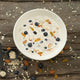 Rolled oats soaked overnight in milk layered with fresh cut mangoes. 10 oz